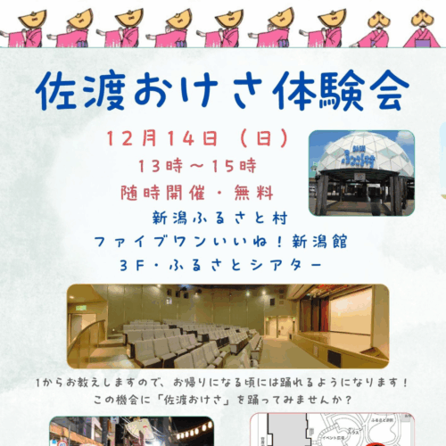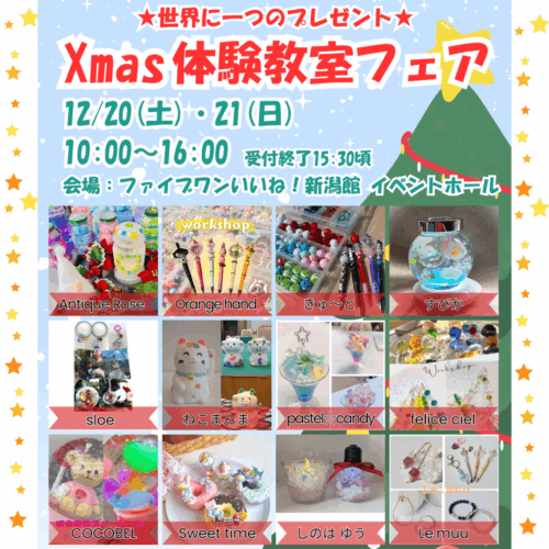 イベント 佐渡おけさ体験会 開催日:2025/12/14(日) 体験教室・チャレンジ 民話の昔がたり 開催日:2025/12/14(日) 体験教室・チャレンジ チャレンジショップ/Art tomo 開催日:2025/12/14(日) 体験教室・チャレンジ 紙芝居 開催日:2025/12/20(土) 体験教室・チャレンジ Xmas体験教室フェア 開催日:2025/12/20(土)・21(日) 体験教室・チャレンジ キラキラサンキャッチャー&小物づくり体験(販売あり) 開催日:2025/12/20(土)・21(日) 体験教室・チャレンジ キラキラパフェのフォトスタンド作り 開催日:2025/12/20(土)・21(日) 体験教室・チャレンジ 保冷剤で作るオリジナルアートボトル 開催日:2025/12/20(土)・21(日) 体験教室・チャレンジ ウォーターぷにぷに&スノードーム作り体験 開催日:2025/12/20(土)・29(月)・30(火) <<前へ 1 2 3 4 次へ>>
