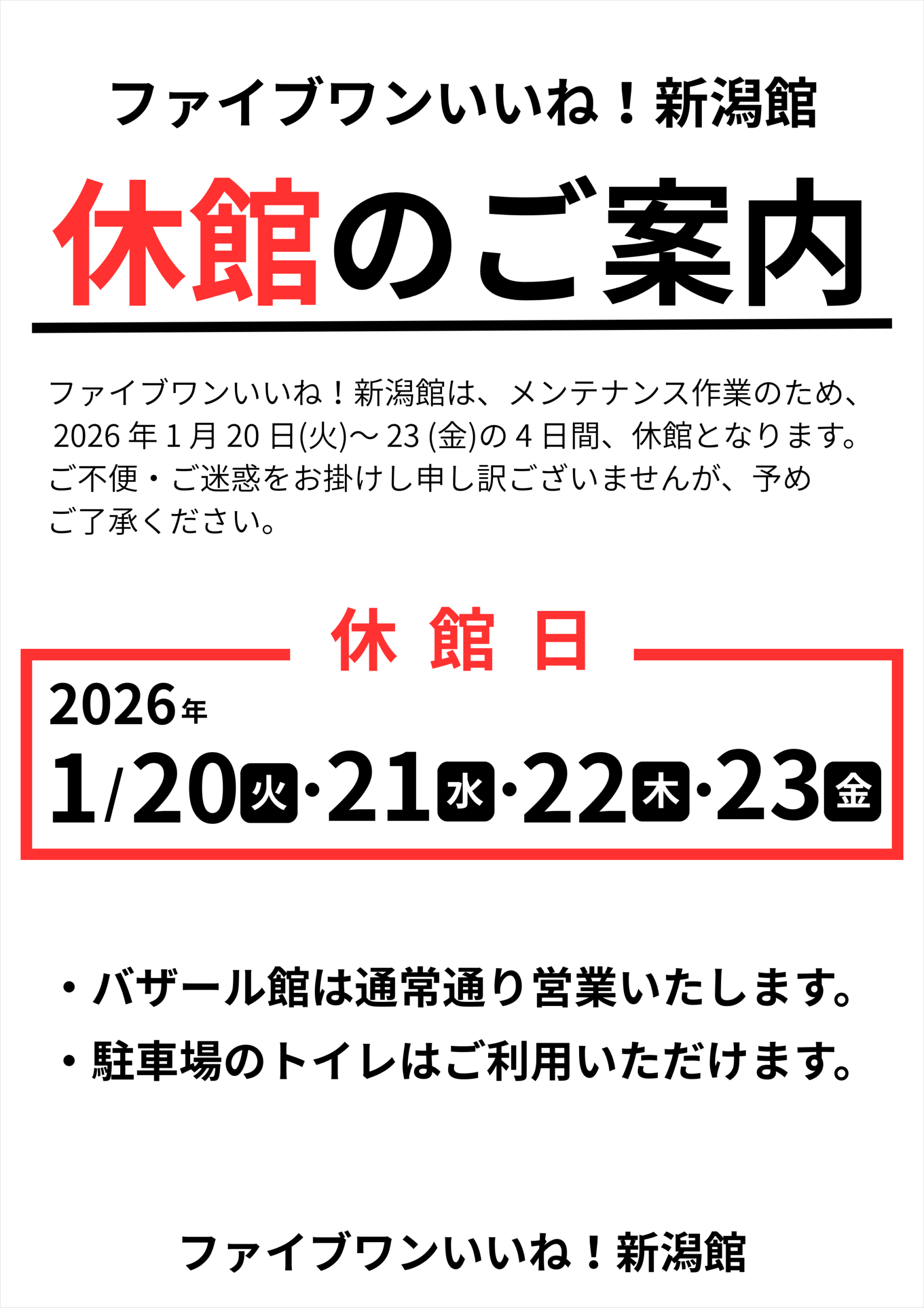 1/20~23ファイブワンいいね!新潟館〈休館〉のご案内